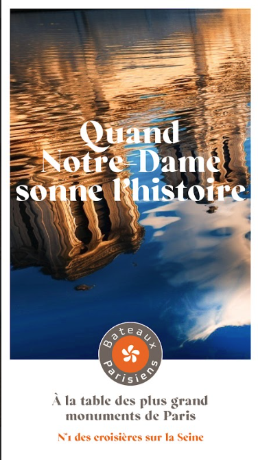 Pour sa nouvelle campagne de communication nous avons définit un nouveau concept : VOIR TOUT PARIS A TRAVERS LA SEINE. Dans un jeu de reflet*, les monuments y apparaissent suggérés, presque abstraits, mais aussitôt reconnaissables par leur force symbolique.Une image léchée, aux tons bleus profonds, où se mêlent les lumières du ciel et celles de la ville.
